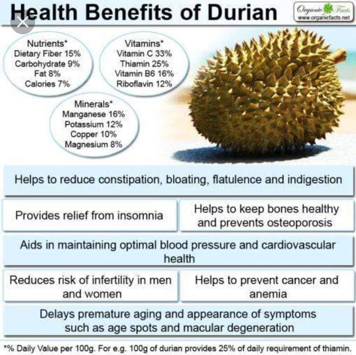 Experts even say that you can rid yourself of yeast infections such as thrush through eating the durian fruit. This is because of the durian’s high iron content that helps the white blood cells in our body make specific chemicals that kill off the infection.