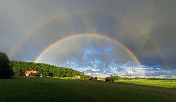 Whitestone, Alaska – a stunning perfect semicircular rainbow with a fainter secondary one