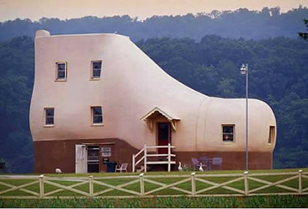 The American Shoe House was built for Pennsylvania’s self-proclaimed “Shoe Wizard” in the 1940’s to serve as the ultimate advertisement. The South African Shoe House clearly is more modern, being built in 1990 and fitting for Grandma.