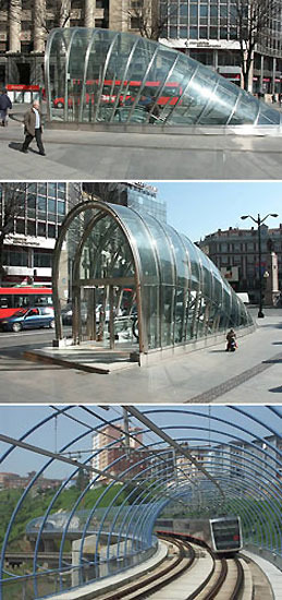 The Subway Station in Bilbao, Spain. The subway station, designed by Norman Foster, is well known for its efficiency and unique design style.