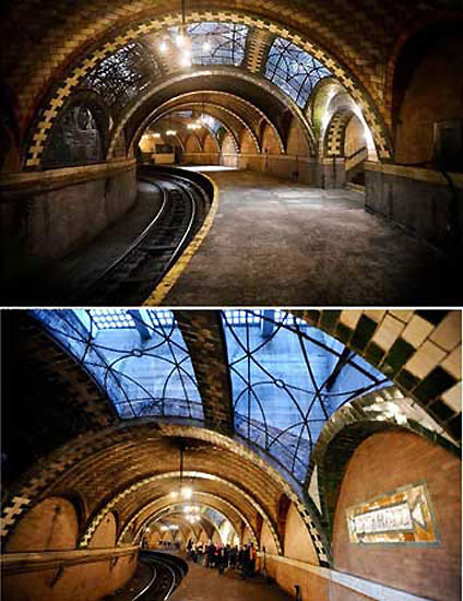 The City Hall Subway Station in New York, United States. The station is a beautiful and functional one. It has been the most attractive subway station in New York since it was put into operation in 1945