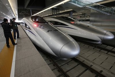 On the railway front, its technology is second to none. “We are now much faster,” Railway Ministry spokesman Wang Yongping said at Tuesday’s inauguration of the super-fast line from Shanghai’s western suburb of Hongqiao to the resort city of Hangzhou. “Now other countries are hoping to cooperate with us.” The train will cruise at a top speed of 220 mph (350 kph), making the 125-mile (200-kilometre) trip in 45 minutes.